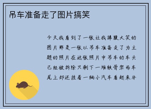 这张以吊车准备走了为主题的照片,虽然只是一张简单的图片,但却引发了我对生活的思考和反思。希望这篇文章也能给读者带来一些启示和思考。